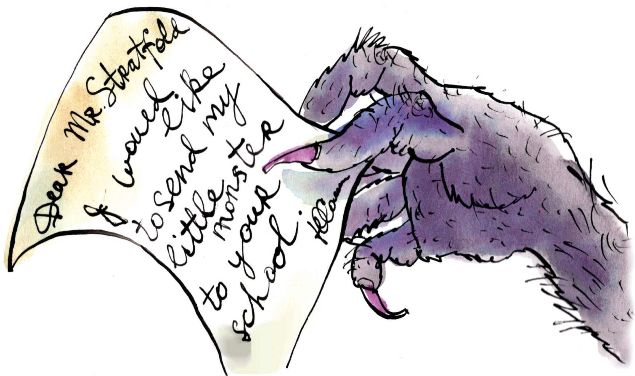 Mr Stratfold’s School for Monsters is famous. Grown up monsters from all over the world send their little monsters to him. They do this when their little monsters are not as scary or as naughty as they should be.